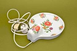 Gyakran a FIM többi gyárának matricáival készültek, sőt csak egy saját mintás lámpa ismert (jelenleg), a többi az mind Pécsi Porcelángyár/Zsolnay, Hollóházi vagy Alföldi mintájú. 9 féle formával gyártották őket. Most már teljes a lámpák pontosabban a típusok/formák bemutatása. Fotó: koporc.hu